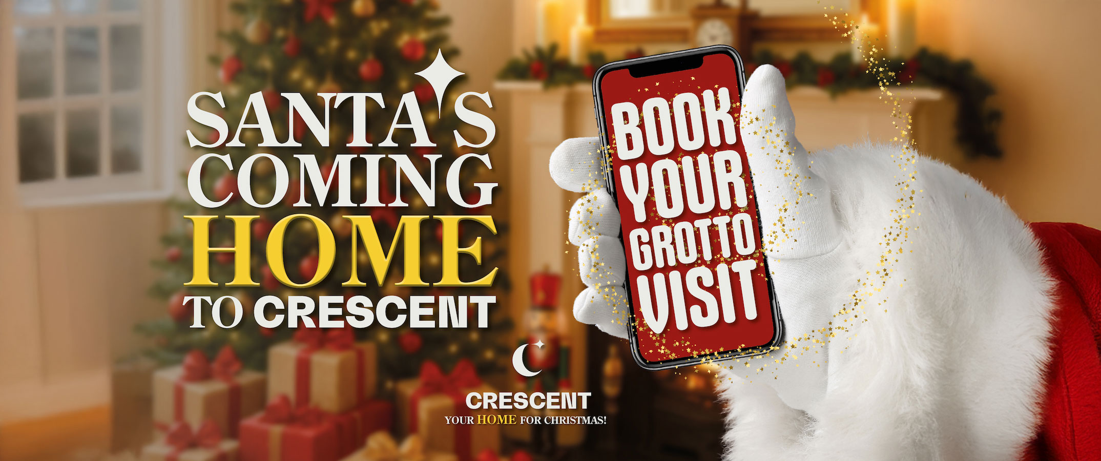 Experience the wonder of the season as Santa welcomes families into his festive “home” at Crescent, filled with twinkling lights, Christmas charm, and all the warmth of the holidays.